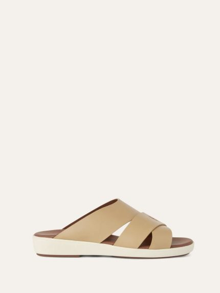 The new “Loro Piana” sandal features an elegant play of crisscrossing straps. The straps are made of soft natural Plunger